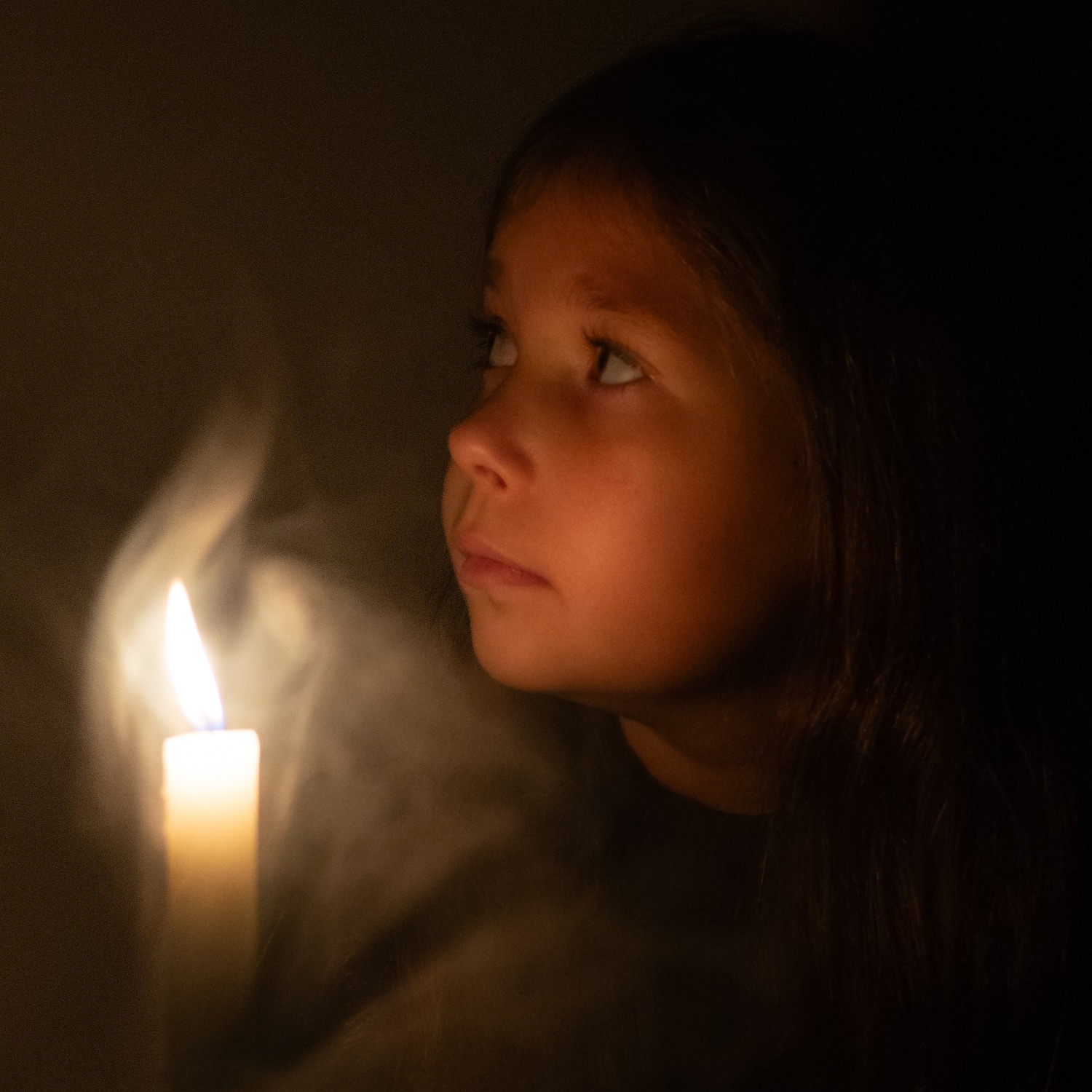 - le risque, avec la bougie, c'est de cramer complètement la flamme et le haut de la bougie pour éclairer suffisamment le visage. C'est le cas, je trouve, sur les 2 photos avec de la fumée.