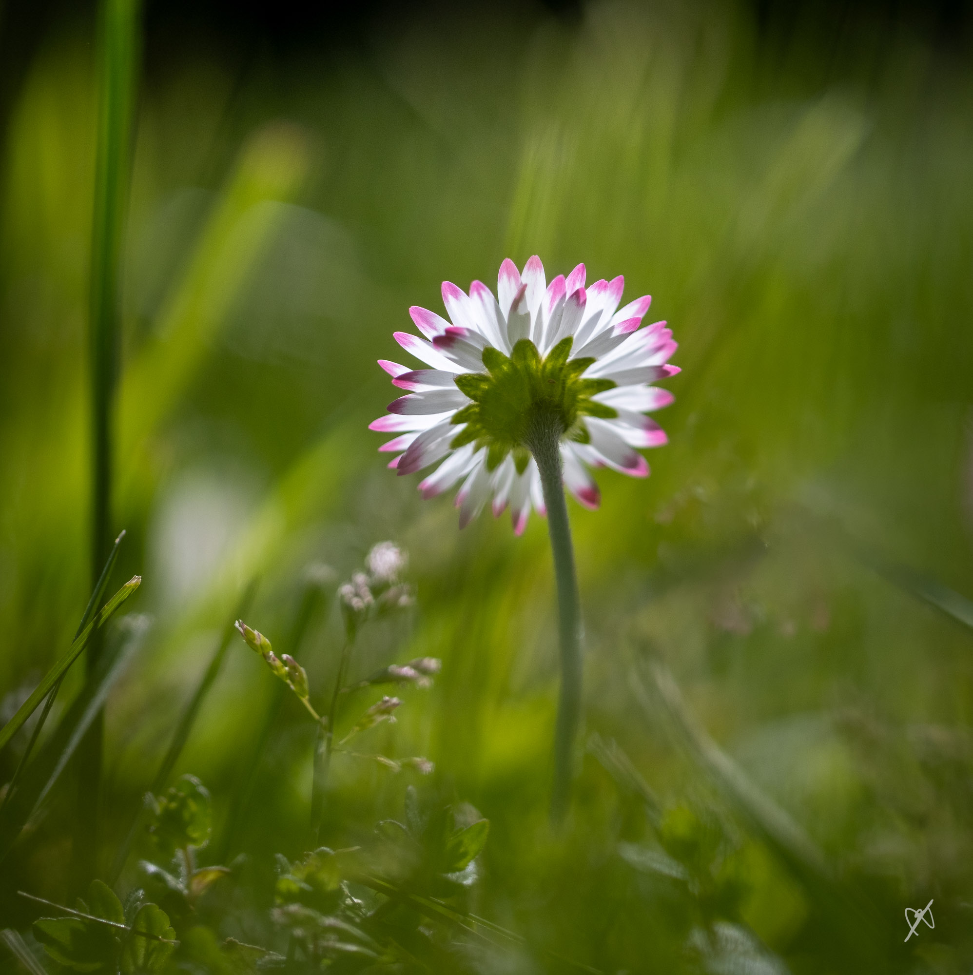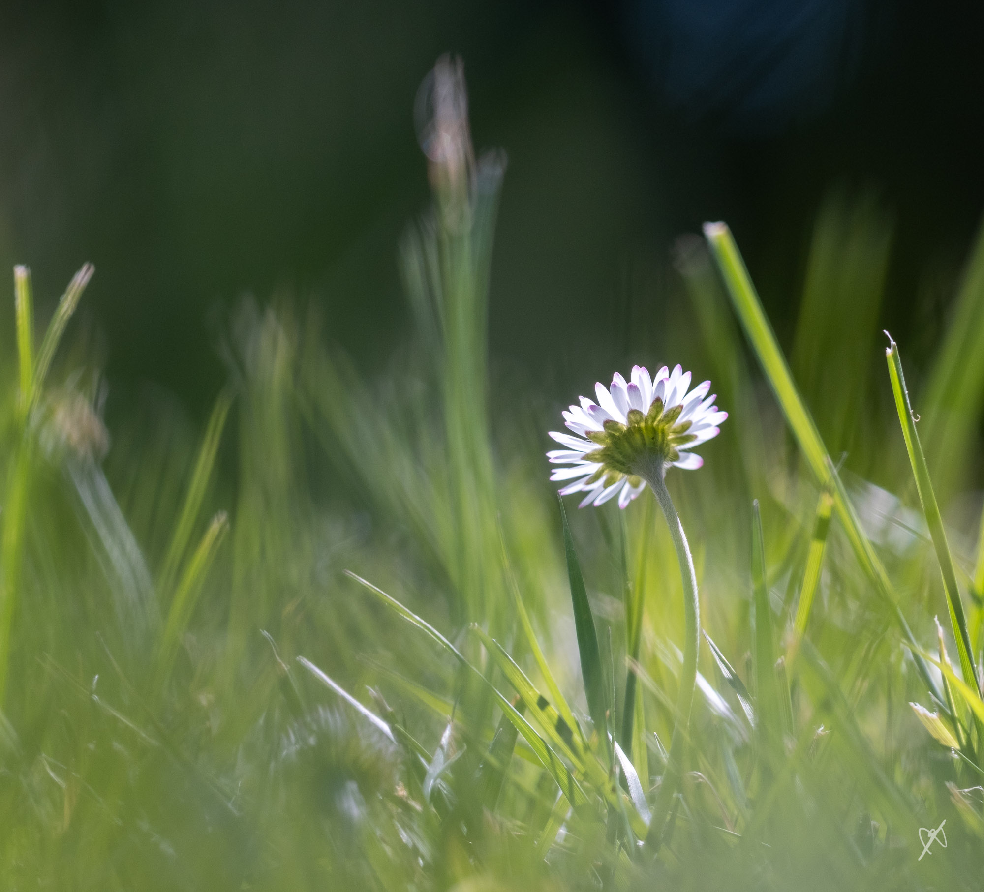 Cet aprèm, c’était mon tour de m’allonger dans l’herbe — voilà le résultat. (Canon 100m f2.8 macro + Fringer sur mon Fujii x-t3, sans bague de rallonge.)